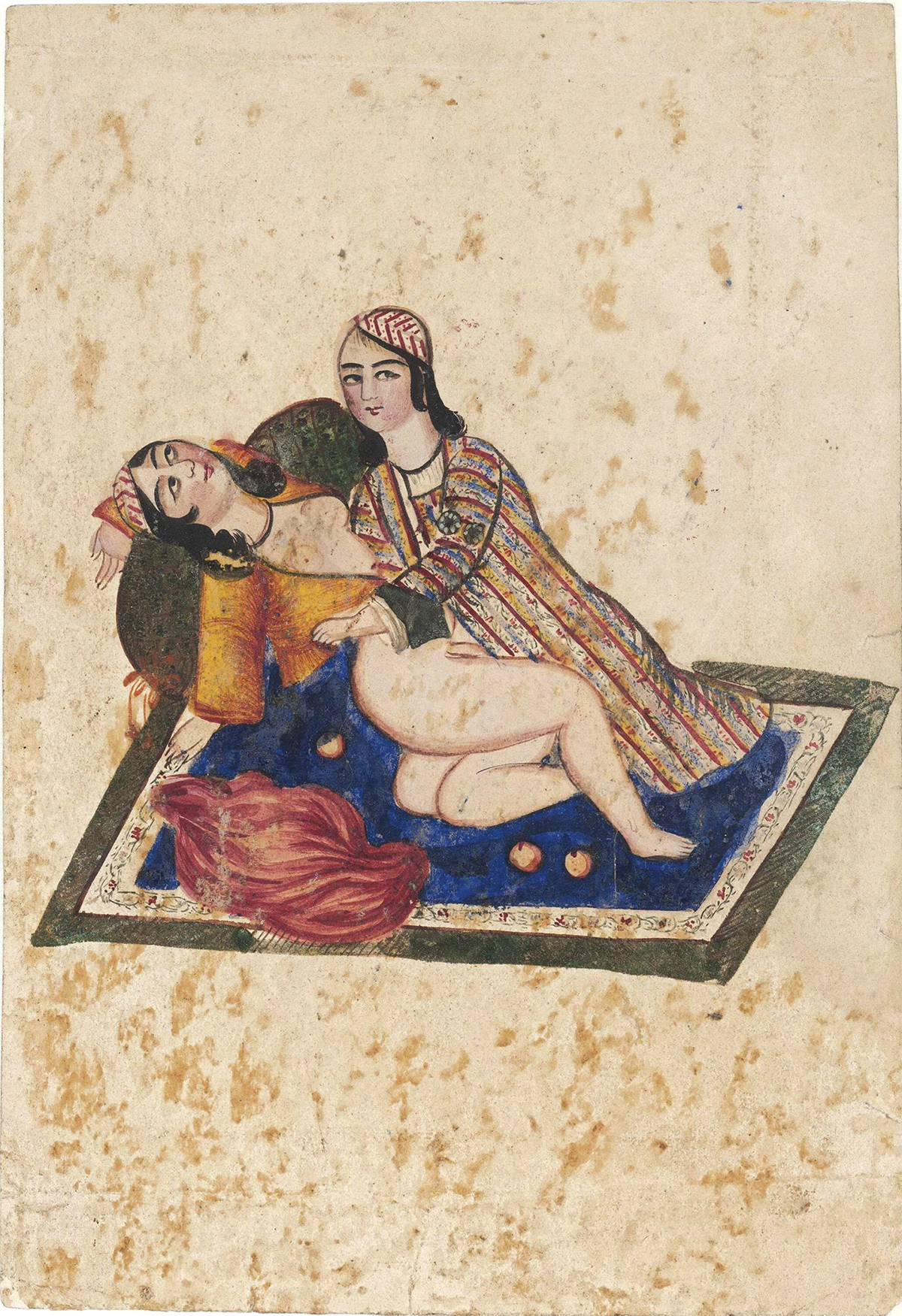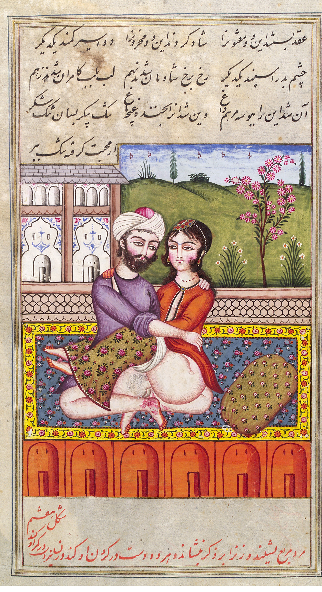 It took me another four years to work up the nerve to start Googling some of my questions. Four entire years of feeling lost and alone before it finally occurred to me that perhaps I was not the only person on earth who felt this way. Purely by accident, after wading through a wealth of male-centric fantasies, I came across a treasure I could barely understand and hardly believed existed: detailed stories of women’s sexuality from Medieval Arabia.1 My first encounter with the willful women of that time was through a group of women from 9th century Baghdad, known as mutazarrifat, who were said to have either temporarily or permanently forsaken the company of men for their preference of lesbian sex. They are said to have formed groups, held meetings, and led schools in which they taught other lesbians how best to achieve pleasure. The most striking and shockingly explicit depiction of lesbian sexual practice in Shihab al-Din Ahmad’s Nuzhat al-Albab Fi Ma Layujad Fi Kitab is dubbed “the saffron massage,” which is essentially a detailed guide to scissoring.2 The name comes from comparing the sexual act to the way one grinds saffron on cloth when dyeing it. The description vividly outlines how to decide which partner goes on top, and how to ensure that both clitorises are exposed in order to achieve maximum pleasure, with a whimsical recommendation to incorporate musk-scented willow oil for lubrication.